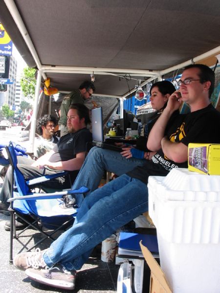 The line in full swing. Wireless Internet, DVD, Web Cam... Nerds know how to get the sweet hookup.